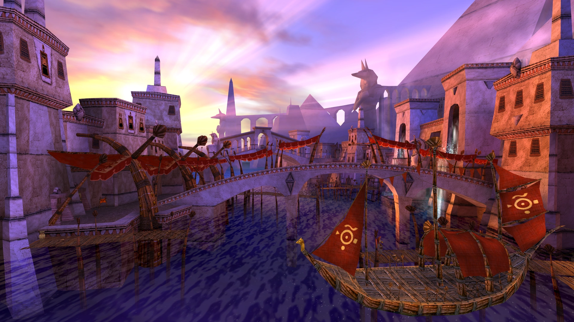 Abydos was a bright, rich city surrounded by eel-infested water. Several canals cut through the city with graceful bridges that would span over them, allowing inhabitants to walk over the dangerous water. A number of pyramids could be seen soaring over the city along with statues of the god Anubis decorating the white walls in the city.