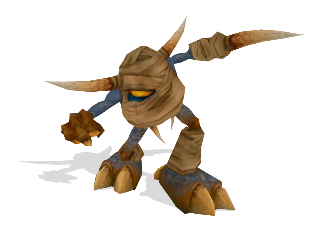 The Almost-a-Bull appears to be completely covered in bandages like a mummy. It uses its claws to deliver brutal and dangerous attacks. Almost-a-Bulls appear from gas vents, and shrink in size with each strike from the Blade of Osiris; if not killed, they go back to the gas vents to regrow and heal.