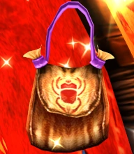 Sphinx received the large scarab bag from the Poor Bird during a visit to the Bedouin Outpost. The Poor Bird traded the bag for a Parasol. The bag was used to purchase the Featherless Turkey, Shuttlecock Bird, the Dart Belt and the Beetle Satchel.