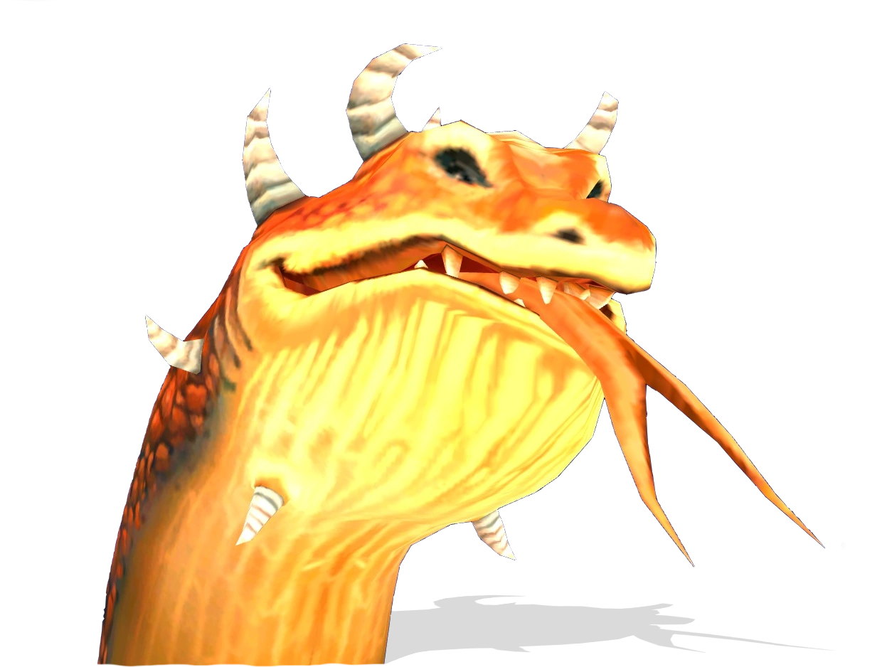 Spitting Toads are dragon-like beasts with orange skin, horns on their heads and forked tongues. The creature's favorite food is coconuts, and their "assistance" for those who provide them seems to be launching the adventurer to hard-to-reach locations.