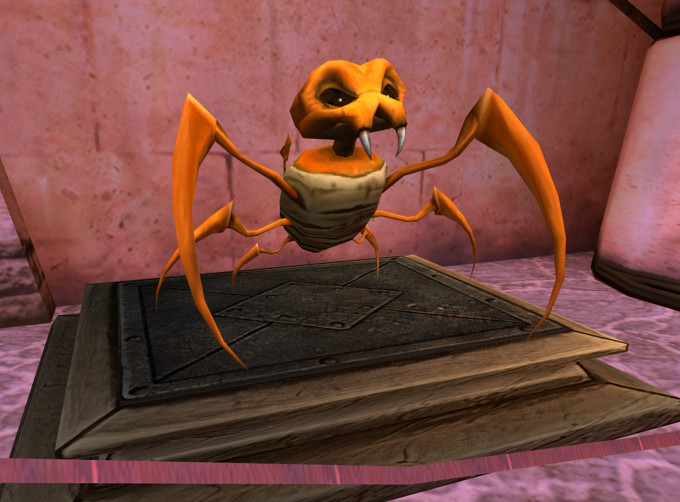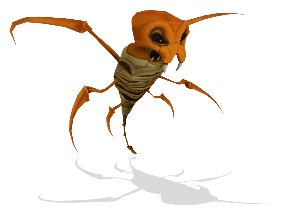 Wasp Spiders were orange and tan spiders that had mantis-like claws and a skull-like head. The plate armor on their abdomens resembles mummy wrappings. Physically, it is the largest of the four spider monsters.